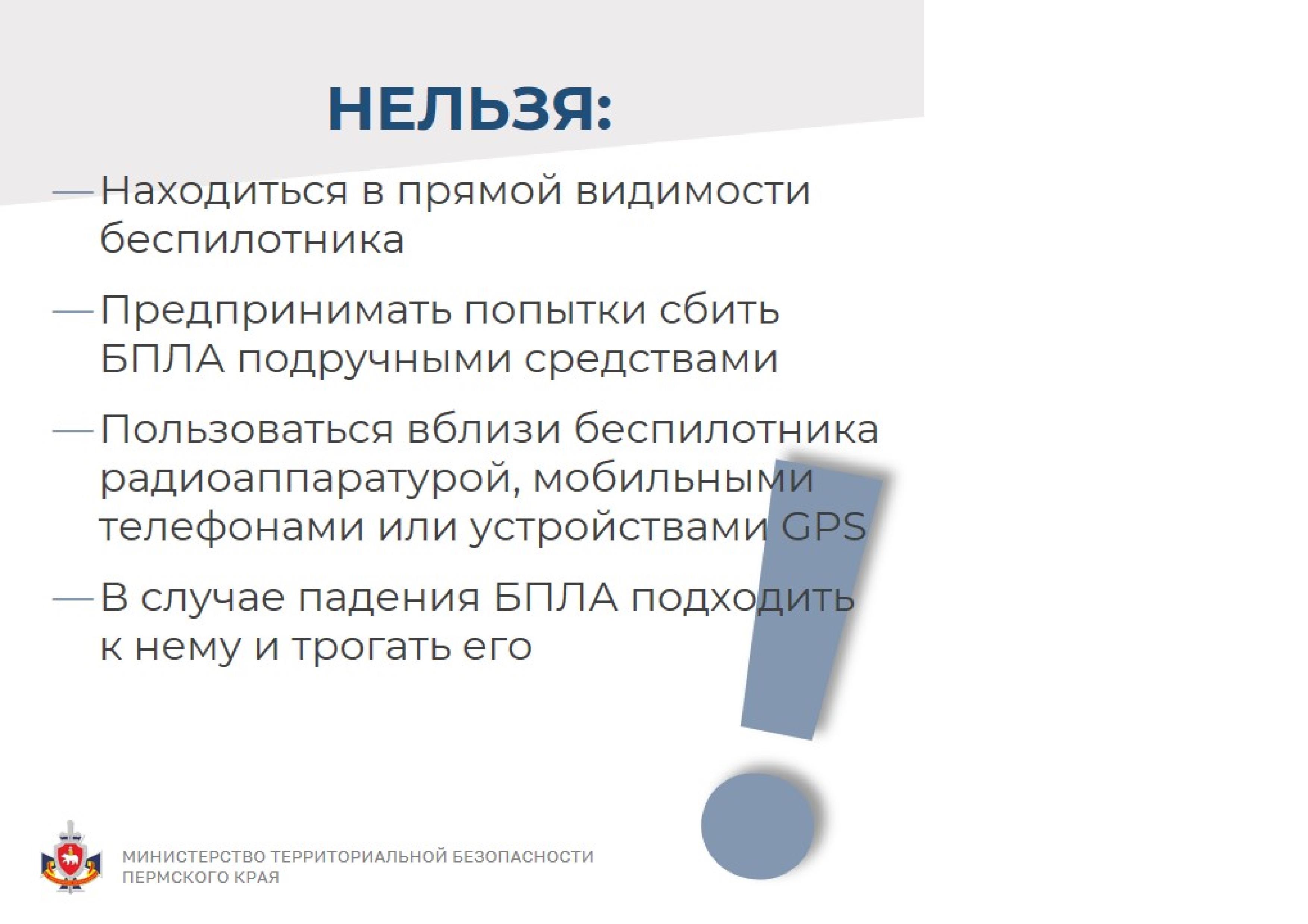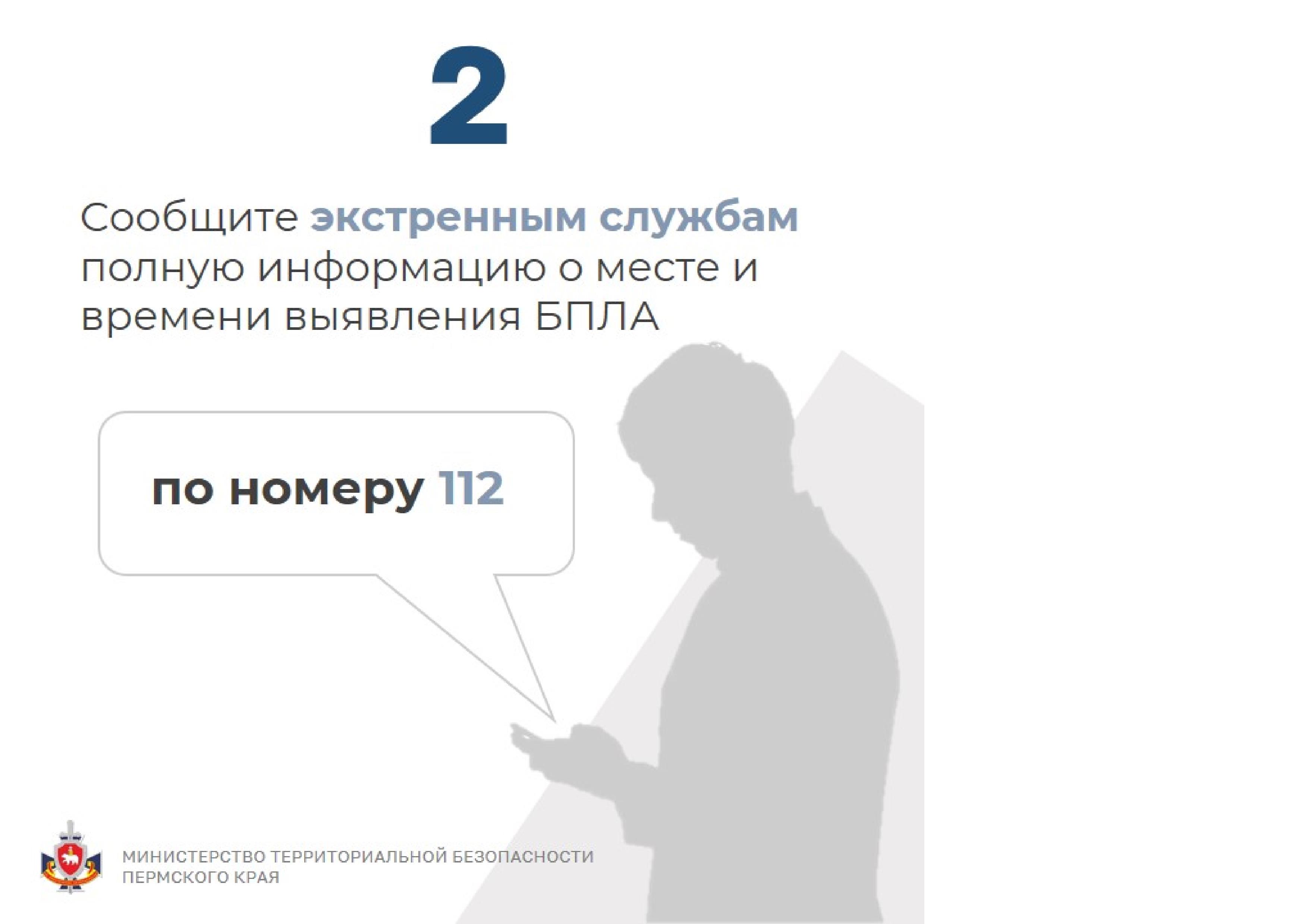 В целях оперативного реагирования на чрезвычайные ситуации на территории Пермского края, представляем информацию о мобильных приложениях «Система 112» и «МЧС России», памятку по действиям при обнаружении беспилотного летательного аппарата